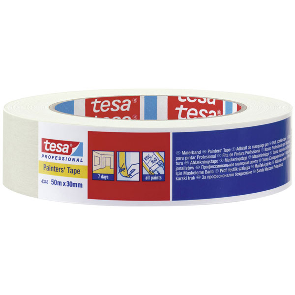 The tesa masking tape tesakrepp® is a beige adhesive tape measuring 50 metres in length and 30 millimetres in width. It is designed for effective masking in painting applications, ensuring clean edges and protecting surfaces. Typically used by painters for precise painting tasks, this tape provides reliable adhesion to different surfaces.