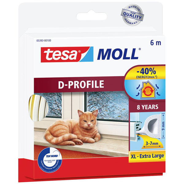 tesa 05393-00100-01 tesamoll Draught excluder white 6 m x 9 mm adhesive tape