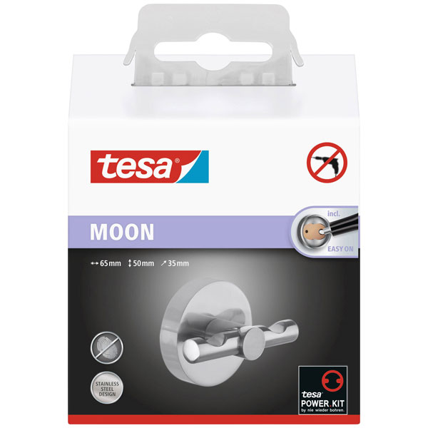 tesa 40305-00000-00 MOON coat hook 65x50x35mm silver Adhesive mount