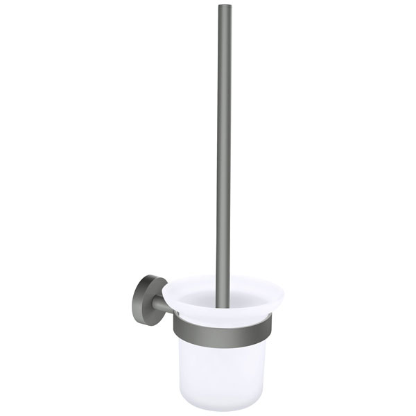 tesa's Moon Grey toilet brush and holder offers a sleek adhesive metal design. It features durable construction, ensuring long-lasting use. The product is ideal for maintaining cleanliness and organisation in modern bathrooms.