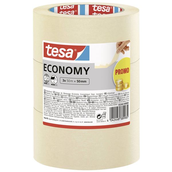 tesa 55342-00000-00 Economy Masking Tape white 50m x 50mm 3pcs solvent-free