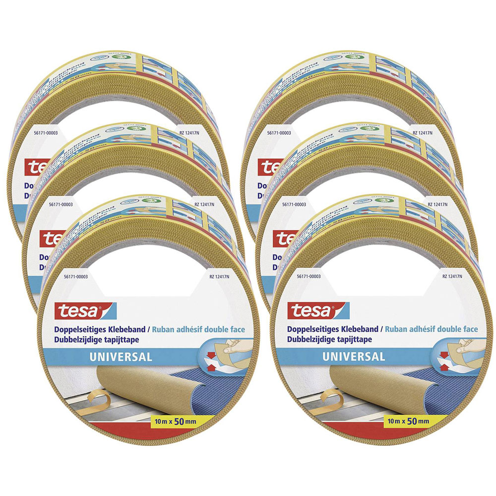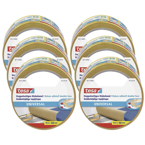 tesa 56171 Universal double sided Adhesive Tape 10m x 50mm 6 pack
