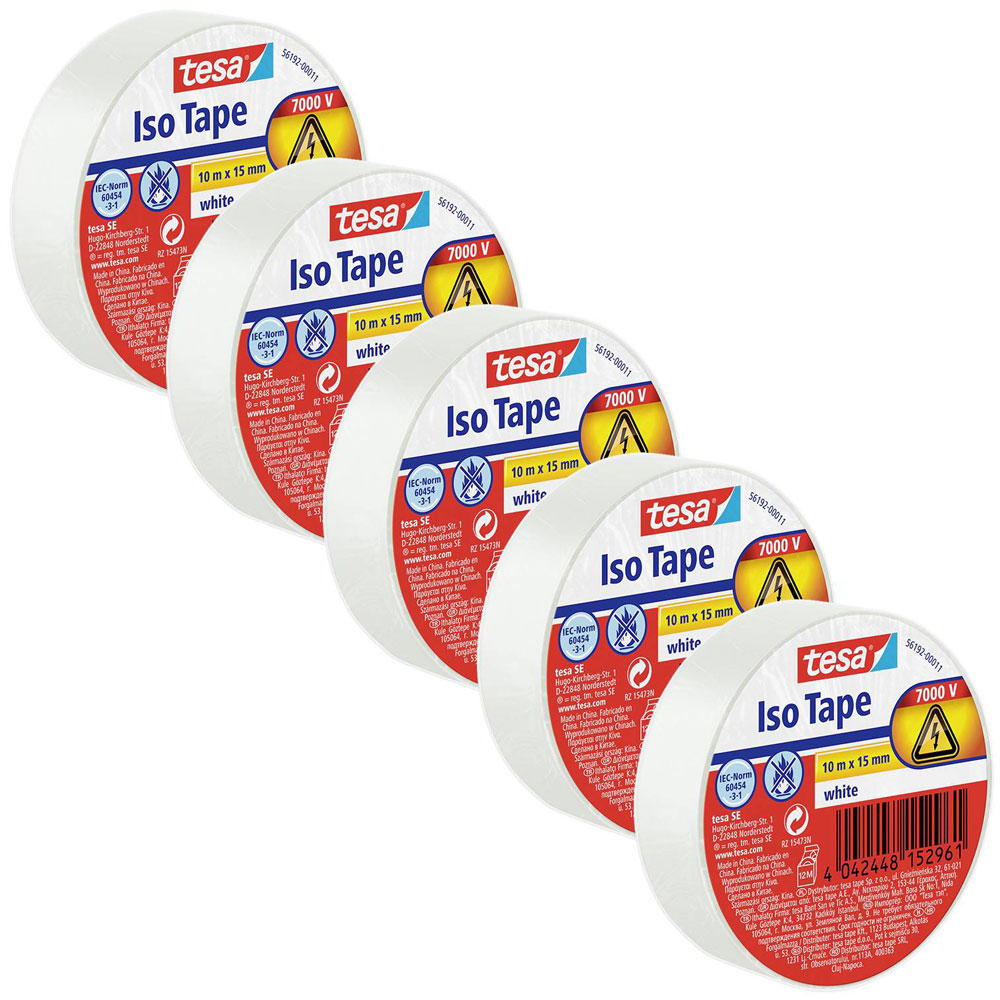 tesa 56192-00503-23 Electrical Tape 10m x 15mm white 5pcs flame-retardant