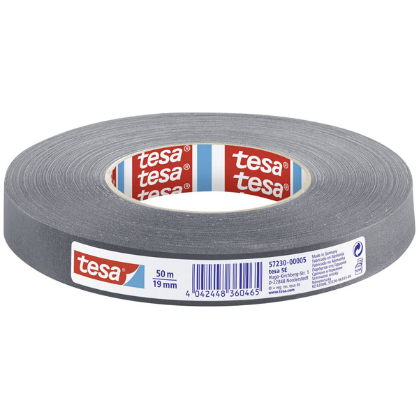 The tesa PERFECT 57230-00005-02 cloth tape is a strong and durable repair tape measuring 50m in length and 19mm in width. Manufactured by tesa, this extra power tape is grey and heat-resistant, making it ideal for outdoor applications and various repair tasks. It is commonly used as duct tape, gaffer tape, or fabric tape for both household and professional projects.