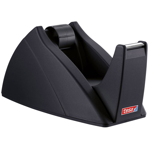 The tesa Desk Tape Dispenser Easy Cut Black features a compact design ideal for office use. Its sturdy construction ensures stability, and it's suitable for cutting duct tape, packaging, and wrapping materials. Manufactured by tesa, this dispenser is practical for everyday desk tasks.