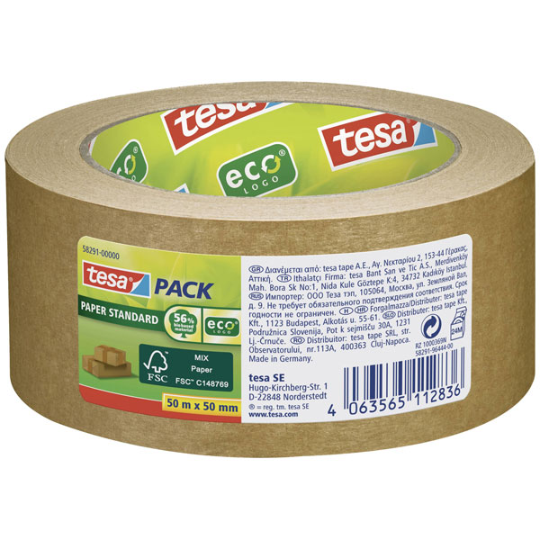 tesa 58291 STANDARD EcoLogo Packaging Tape 50m x 50mm brown 1 pc