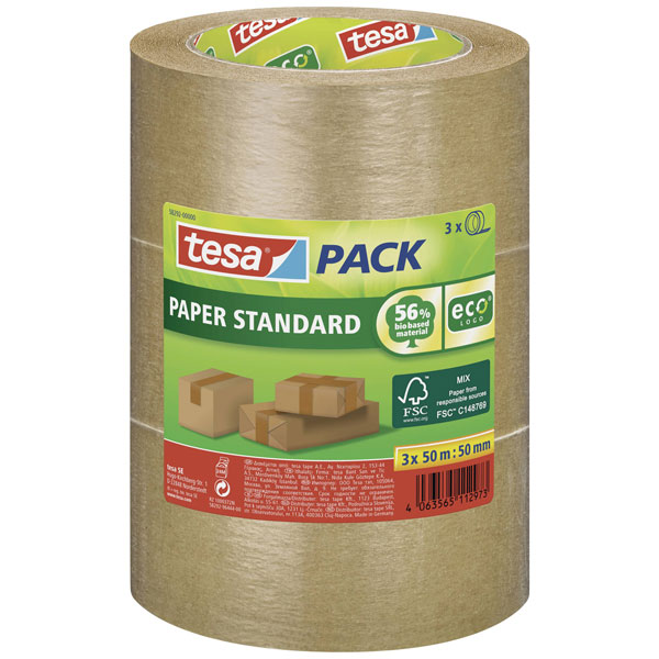 tesa 58292 EcoLogo Packaging Tape 50m x 50mm 3pcs Eco-friendly brown
