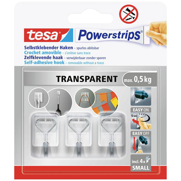 tesa 58620-00003-00 Powerstrips Small Adhesive Hooks White Stainless Steel 3pc