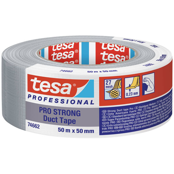 tesa 66462-00003-00 Duct Tape Pro-Strong is a robust adhesive repair tape designed for demanding applications requiring durability and reliability. This grey tape measures 50 metres in length and 50 millimetres in width, providing ample coverage for a variety of tasks. Known for its excellent adhesion properties, the tape is suitable for both indoor and outdoor use, offering strong holding power even on rough or uneven surfaces. Engineers often utilise this tape in maintenance and repair operations, such as sealing ducts, securing cables, or performing temporary fixes on equipment. Its versatility and ability to maintain adhesion under varying environmental conditions make it a valuable tool in the engineering toolkit.