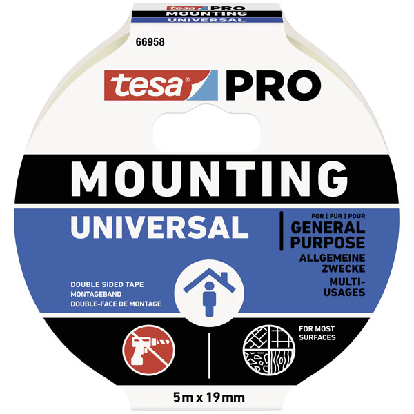 tesa 66958-00001-00 Mounting PRO Universal Tape 5m x 9mm white durable