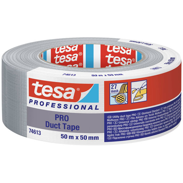 tesa's Duct Tape PRO is a grey repair tape, measuring 50m in length and 50mm in width. It is ideal for sealing, repairing, and bundling tasks. The tape's robust construction makes it suitable for both indoor and outdoor applications.