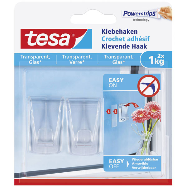 tesa 77735-00000-00 large Adhesive hooks transparent 2pcs reusable no trace