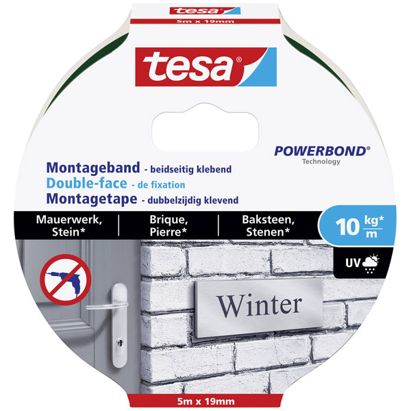 The tesa BRICK & STONE 77749-00000-00 industrial tape is designed for mounting without drilling on brick and stone surfaces. This clever adhesive solution, measuring 5m x 19mm, provides a strong bond suitable for industrial applications. Ideal for fixing items securely on challenging surfaces, it offers a convenient and tool-free mounting solution.