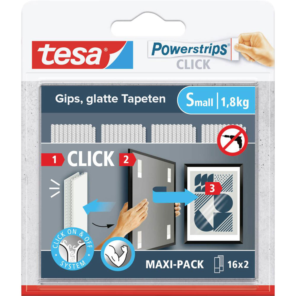 tesa 77720-00020-00 Powerstrips CLICK Small Adhesive Hooks 60mm x 20mm 16 Pair