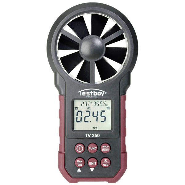 Testboy 62601000 TV 350 Anemometer Wind Speed: 0.8-30 m/s USB Output