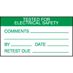 These high quality large labels from Customark bear the words "Tested For Electrical Safety" and have spaces for Initials, Date and Retest Due.