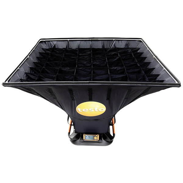 Exchangeable hood (1200 x 1200 mm) for mounting on the volume hood testo 420, for measurements on air inlets and outlets. With integrated rectifier for accurate measurements.