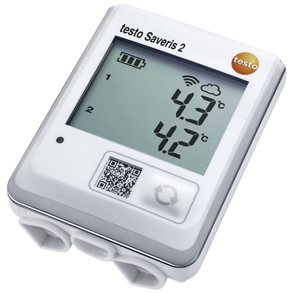 The radio data logger Testo Saveris2-T2 monitors temperatures and door contacts in storage, cooling and work places. With the connectable sensors, measured temperature values or door contacts are also reliably recorded over long periods of time and saved directly via your WLAN to the Testo Cloud (online data storage). With your internet-enabled smartphone, tablet or PC, you can use access the measurement values at any time and anywhere. In the event of measurements outside the set parameters, you will be notified by email or SMS allowing fast reaction, if necessary.