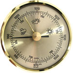 This brass barometer from TFA allows you to build your own classical style weather station. A brass-coloured scale with printed numbers is protected by acrylic glass and has a polished brass rim. The movement housing is equipped with a mounting ring to either press in or stick on. The weather instrument is also suitable as a replacement for defective instruments or for individual attachment in cases where you only need certain information.