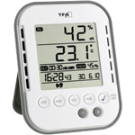 This TFA thermometer and humidity logger from TFA allows you to make detailed recordings of the temperature and humidity and to actively monitor them. Features include: individual alarm limits for all channels can be set, °C/°F display, optical and optional acoustic, separable display of alarm events, quartz clock, 12/24 hour display, date, max/min. display with date indication, dew point possible on demand and battery level indicator.