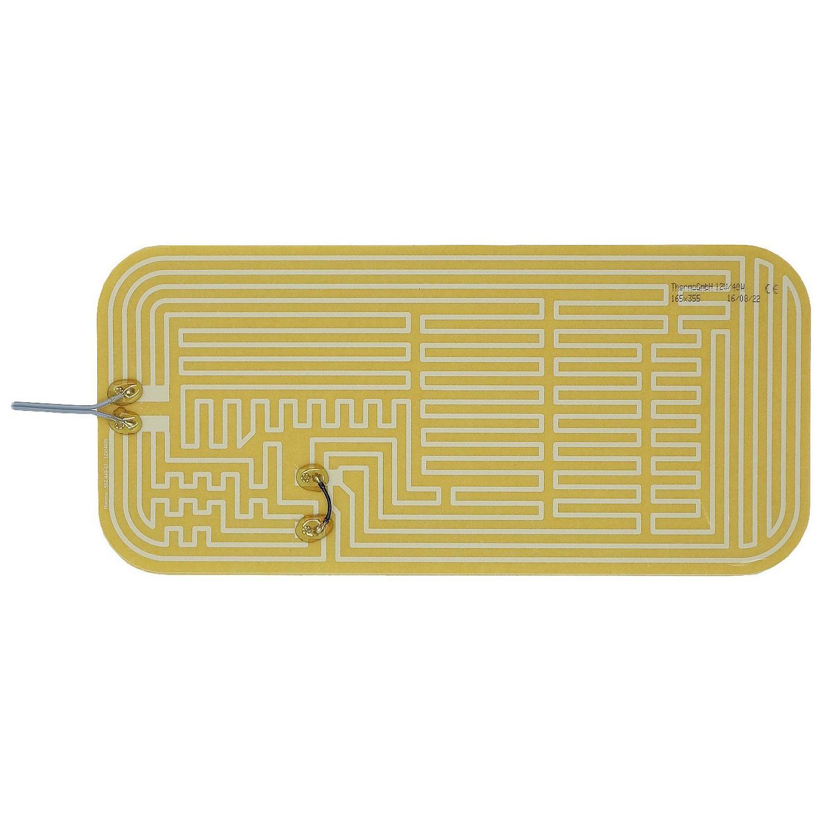 Thermo TECH's self-adhesive heating foil, model 2115423, operates at 12 V with a power output of 40 W. This thermally conductive film measures 355 mm by 165 mm, offering efficient heat distribution. It is ideal for applications such as car heating or any surface heating needs.