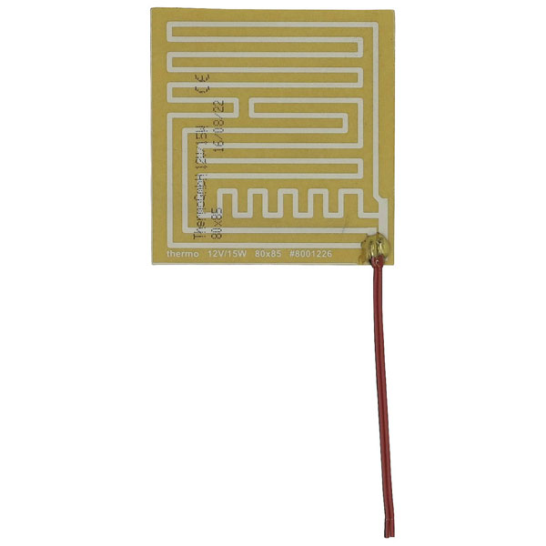The Thermo TECH 2115456 heating foil is a self-adhesive, thermally conductive film measuring 85 mm by 80 mm. With a power rating of 15 watts at 12 volts, it is ideal for applications such as car heating. This heating pad is designed for easy installation and efficient heat distribution.
