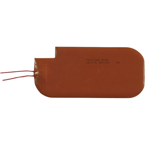 Thermo TECH offers a self-adhesive silicone heating foil with dimensions of 185 mm by 85 mm, designed for efficient thermal conduction. Operating on 230 V AC/DC and delivering 250 W of power, it has an IPX7 rating for reliable waterproof protection. This heating pad is ideal for automotive applications and general-purpose heating needs.