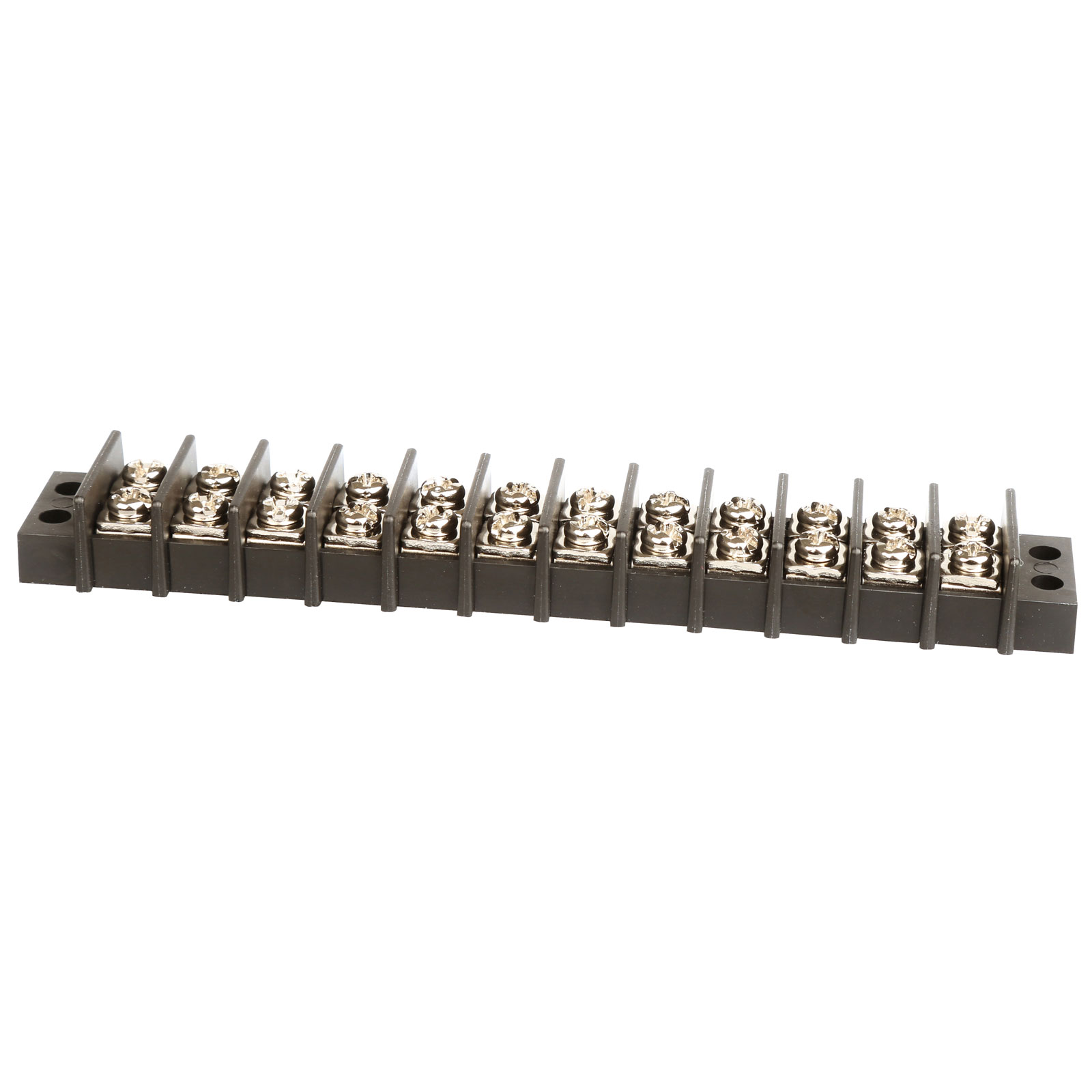 Connections are made via two rows of screw-headed rising clamp terminals.