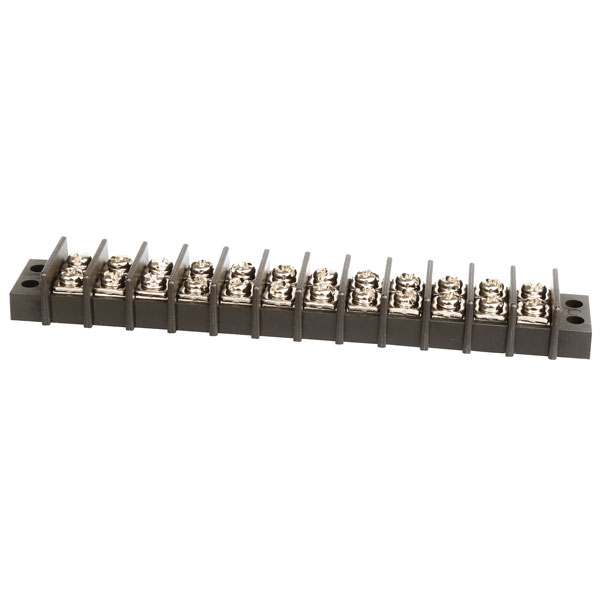 A 12-way 20A barrier strip terminal block on a 9.5mm pitch.