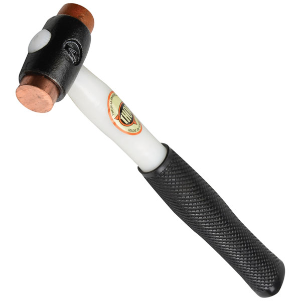 Classic Copper & Hide Nylon Hammer. Combines force, finesse and additional grip. Use the copper face for harder strikes with maximum impact, then switch to the hide face for softer, controlled blows that won’t damage delicate surfaces. A go-to for any demanding environment where wood isn't suitable and where surface protection and safety are essential. Recommended for classic car maintenance, bicycle repair, aerospace, rail, toolmaking, and metalworking.
