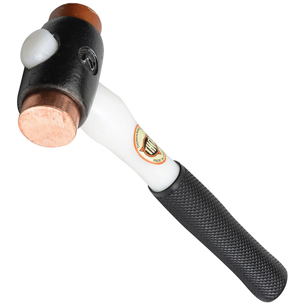 Classic Copper & Hide Nylon Hammer. Combines force, finesse and additional grip. Use the copper face for harder strikes with maximum impact, then switch to the hide face for softer, controlled blows that won’t damage delicate surfaces. A go-to for any demanding environment where wood isn't suitable and where surface protection and safety are essential. Recommended for classic car maintenance, bicycle repair, aerospace, rail, toolmaking, and metalworking.