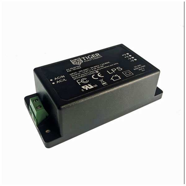 Tiger Power Supplies TP1064, 12V DC, 5A, 60W chassis mount power supply module, featuring input and output screw terminal connections.