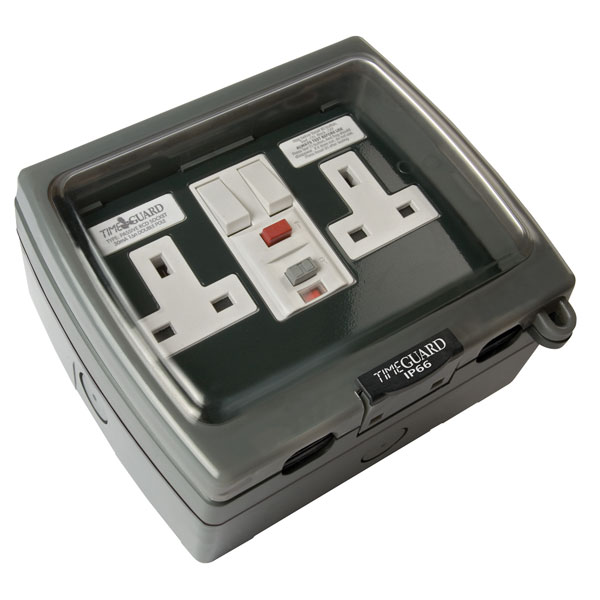 The Timeguard TGV204 Weathersafe Vision 2 Gang 13A Switched RCD Socket has