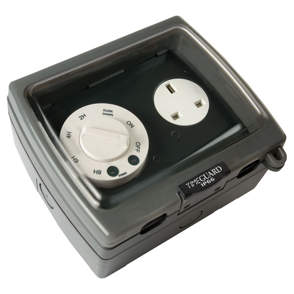 The Timeguard TGV206 Weathersafe Vision 2 Gang Socket and Photocell has been