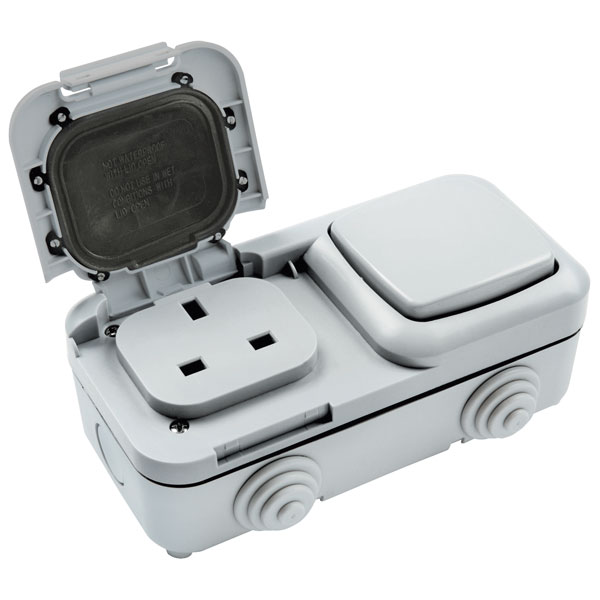 The Timeguard TPS203 Outdoor 2 Gang 13A Socket and Switch is ideal for