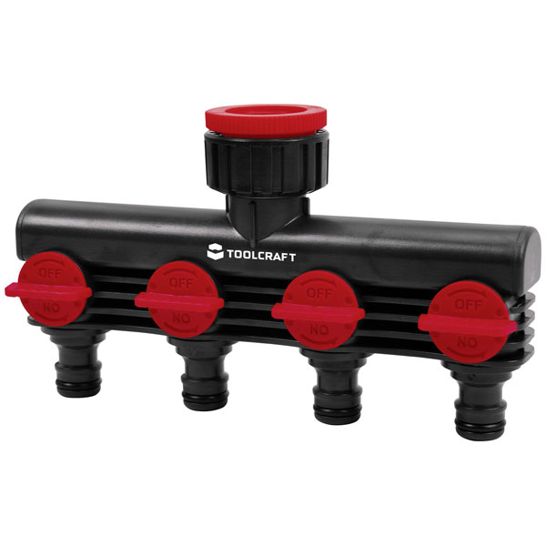 Toolcraft 2302371 Plastic 4-Way Splitter with Water Stop and Regulator