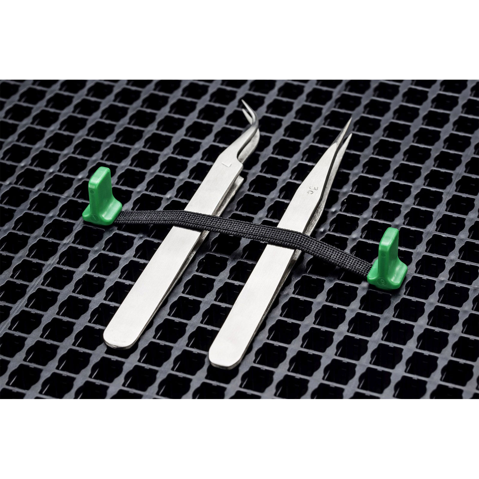 These stopper clips from Toolcraft are suitable for use with perforated plates or peg boards to display small tools or components.