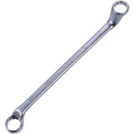 A double-ended ring spanner from Toolcraft. The spanner has 75° cranked heads that allow space for fingers and access into recessed areas. The spanner has 2 different sized rings.