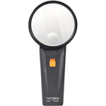 A 75mm diameter magnifier with 2x magnification and visual field illumination.
