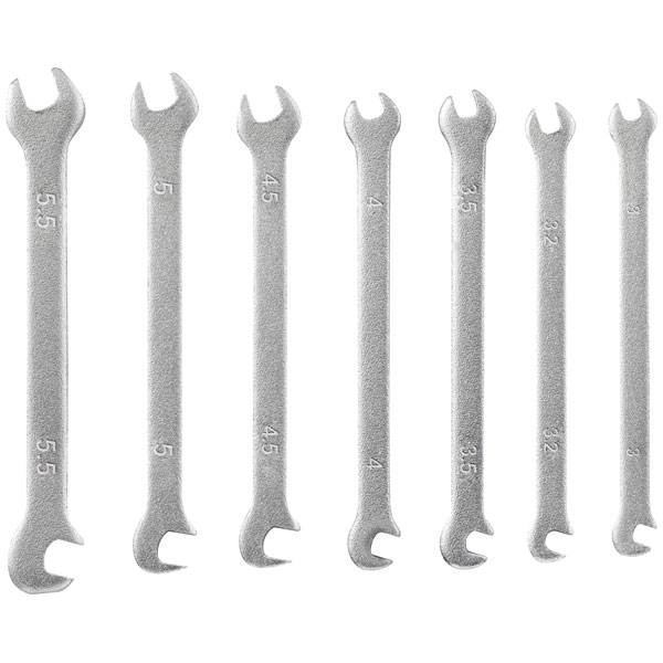 Toolcraft manufactures the TO-4985421 Double-ended open ring spanner set, a 7-piece metric set ranging from 3 to 5.5 mm. Ideal for precision work, these open-end spanners are perfect for delicate tightening or loosening tasks in confined spaces. The set is commonly used in automotive, electronics, and appliance repairs.