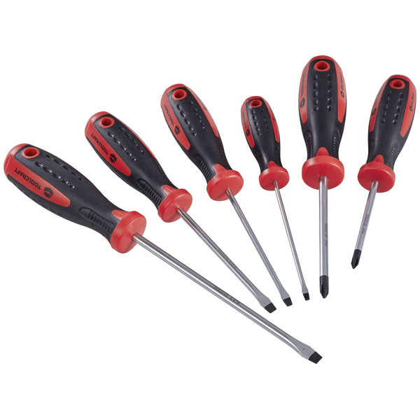 The Toolcraft screwdriver set is a collection of 9 assorted handheld tools designed for precision and versatility. This set includes Slot, Phillips, and Star screwdrivers, catering to a range of DIY or professional repair tasks. Ideal for working on electronics, home improvement projects, and mechanical maintenance.