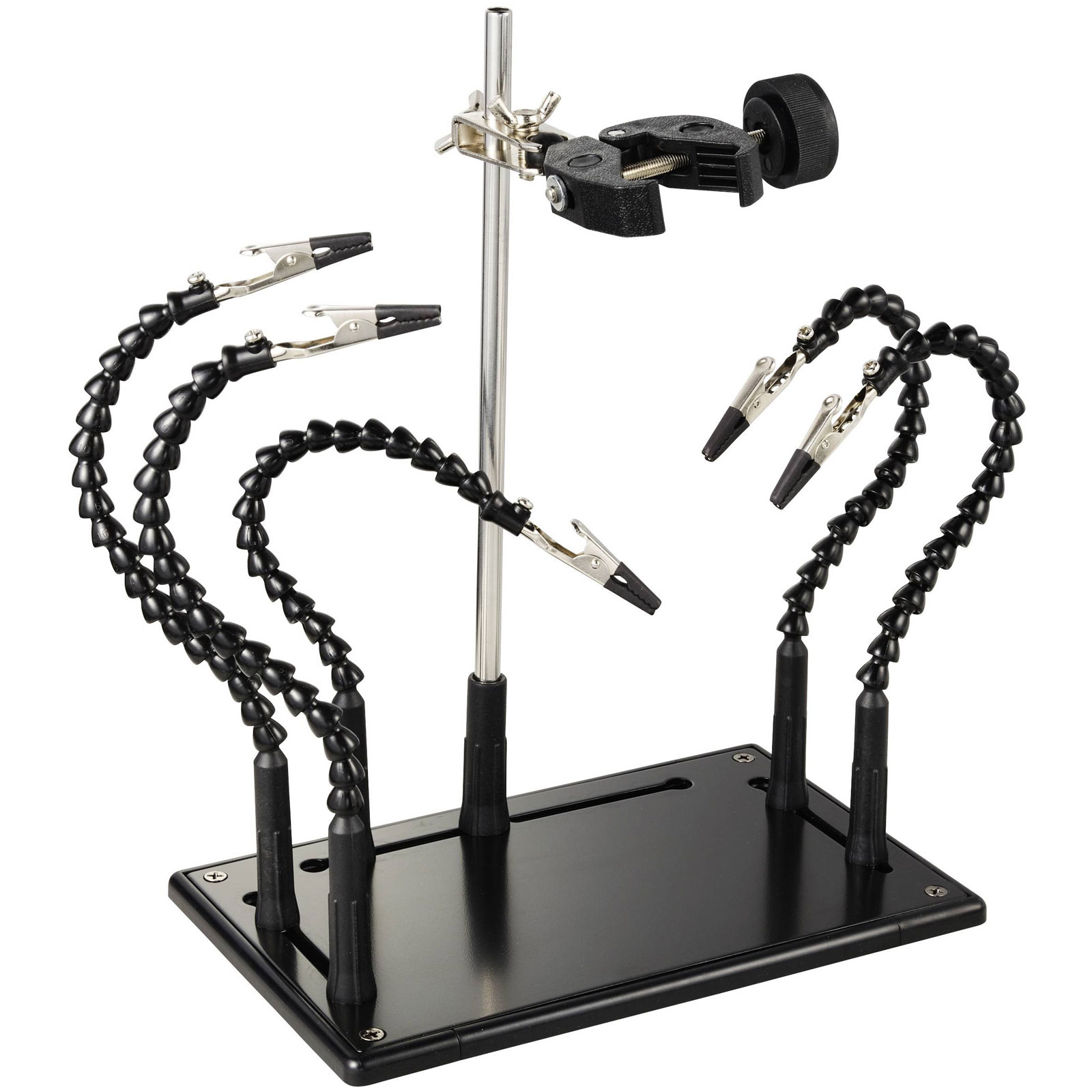 The Toolcraft AT-300 Third Hand is a soldering accessory measuring 210 x 135 x 265 mm, providing stability and precision for intricate tasks. This sturdy tool includes adjustable arms and clips, making it ideal for hands-free soldering and assembly work. Perfect for electronic repairs, the Toolcraft AT-300 simplifies tasks by securely holding materials in place.
