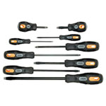 9 Piece Screwdriver Set, 3, 5, 6, 8mm, PZ0, PZ1, PZ2, 38, 75, 150mm Slotted, 38, 75, 150, 200mm Pozidriv Blade Length, Chrome Vanadium Steel Blade Material, Soft, Comfortable Grip Handles, Black Finish Blades, Supplied in Set of 9