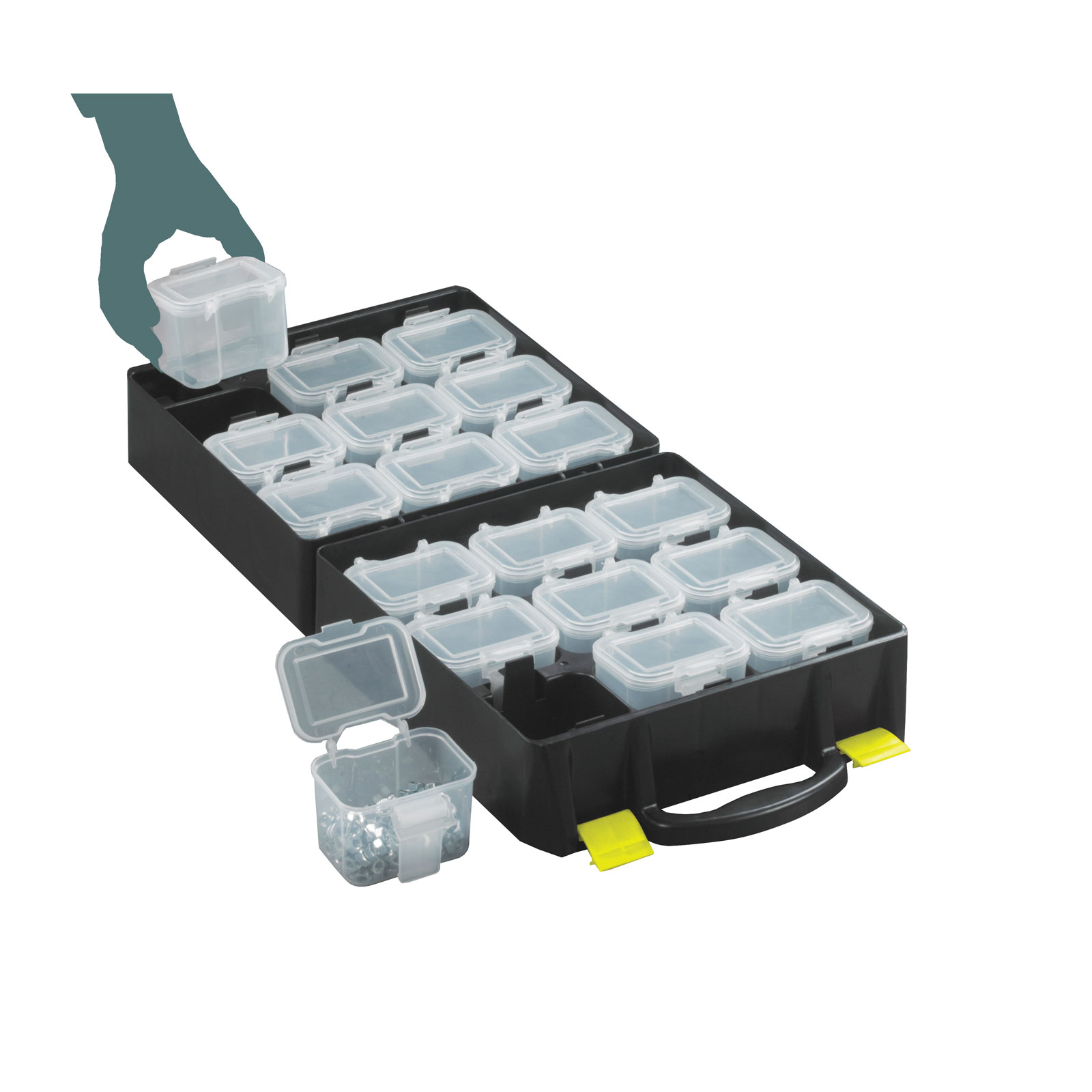 This Topstore assortment case with 18 removable compartments comes supplied in a pack of 5. Both the case and compartments are manufactured from a strong and durable polypropylene.