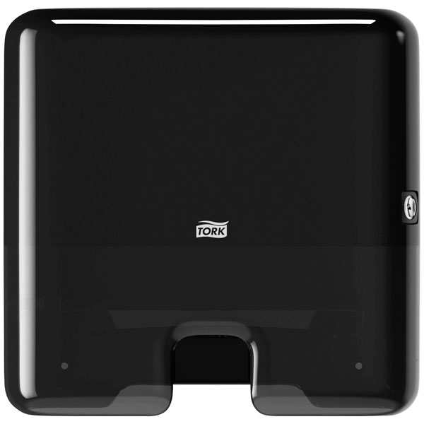 This Tork plastic towel dispenser is finished in black. It features a modern design as part of the Elevation range. Ideal for public bathrooms and commercial washrooms.