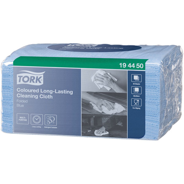 The Tork Coloured Long Lasting Cleaning Cloth 8 Bags of 40 Wipes are low tinted colour-coded cloth for cleaning. The use of different coloured cloths reduces cross-transmission of infection when cleaning a variety of surfaces in hospitals, restaurants, hotels and offices. Manufactured to achieve a soft, yet strong material ideal for performing in both wet and dry conditions.