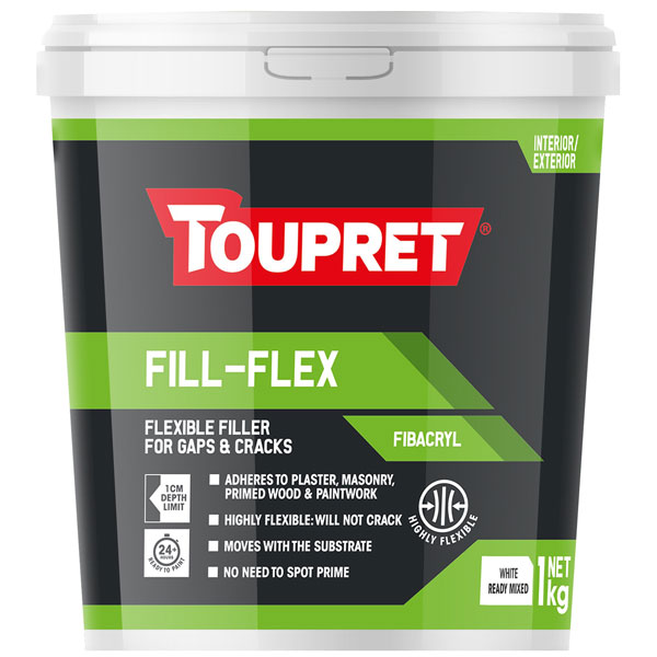TOUPRET® Fill-Flex is supplied ready-mixed in a handy tub. This highly flexible filler is perfect for gaps and cracks, ideal for skirting and architraves where movement is possible. Its flexible formula moves with the substrate and won't crack.