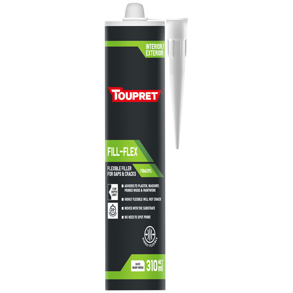 TOUPRET® Fill-Flex is supplied in a handy cartridge with nozzle. This highly flexible filler is perfect for gaps and cracks, ideal for skirting and architraves where movement is possible. Its flexible formula moves with the substrate and won't crack.