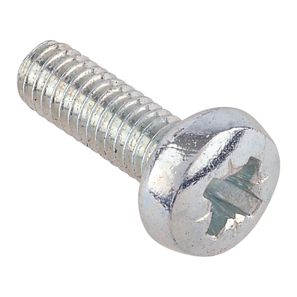 M4 x 12mm metric steel machine screws with Pozidriv pan heads.