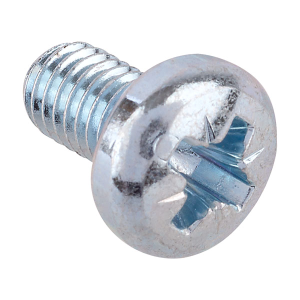 M6 x 10mm metric steel machine screws with Pozidriv pan heads.